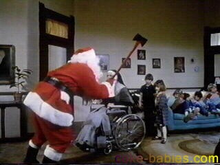 Billy is let into the orphanage by an absolutely idiotic kid, despite being told specifically not to. If you just saw Santa shot by a policeman, it might be a wise idea to steer clear of the next one you see, especially if he appears ten minutes later. Despite this, the kid lets Billy in, and Billy attempts to murder Mother Superior. He fails in his attempt, since he gets shot by a detective who just showed up. This makes the second Santa that was shot in full view of the children. They are going to grow up so messed up in the head.