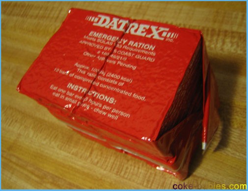 The rations come packed in a vacuum sealed, red package. In a large font is the company’s name, DATREX, which is pretty frightening. It sounds like the name of a company that would be pumping raw sewage into lakes.