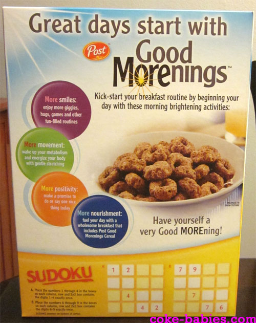 So that was my recent Post “new cereal” history coming into Post’s new effort: its Good Morenings line.