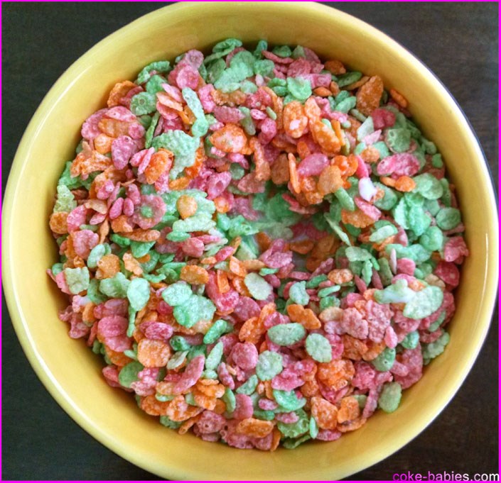 The cereal itself is very bright – half neon, half pastel. The colors are the same as rainbow sherbet, and the color hues and brightness match pretty well. I don’t know if each color is supposed to taste differently – probably not – but I mostly just got “sugar”.